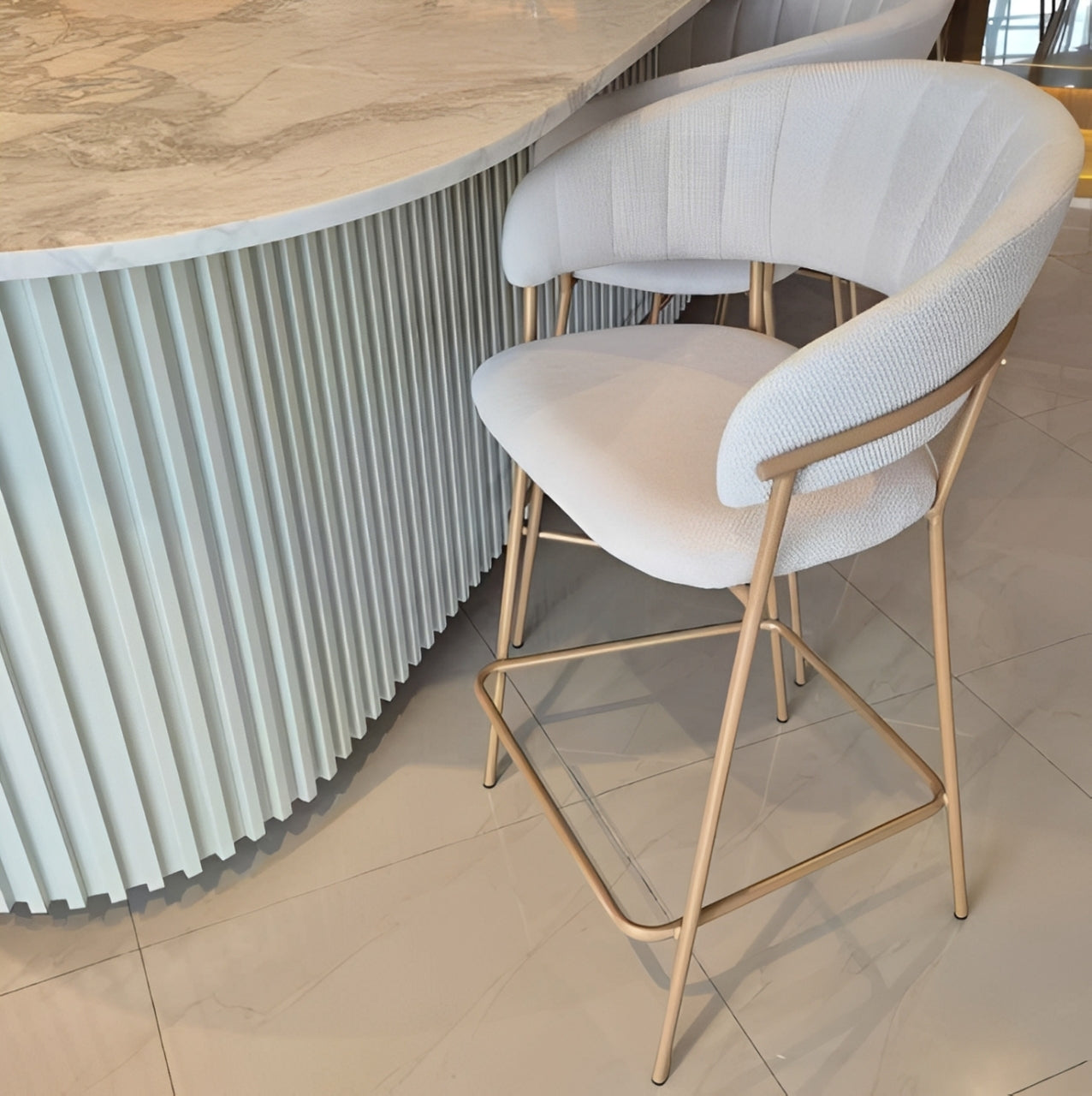 Com linhas modernas e um acabamento impecável, a Banqueta Alla é uma peça statement que eleva a elegância e a praticidade, sendo ideal para projetos que exigem design sofisticado e durabilidade.
