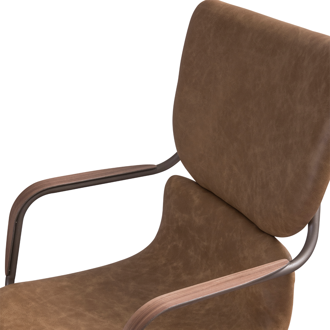 Acabamento: Detalhes sofisticados em lâmina de madeira no braço e base