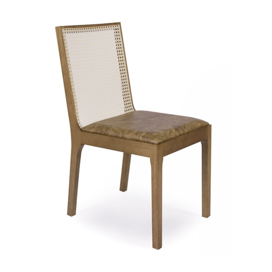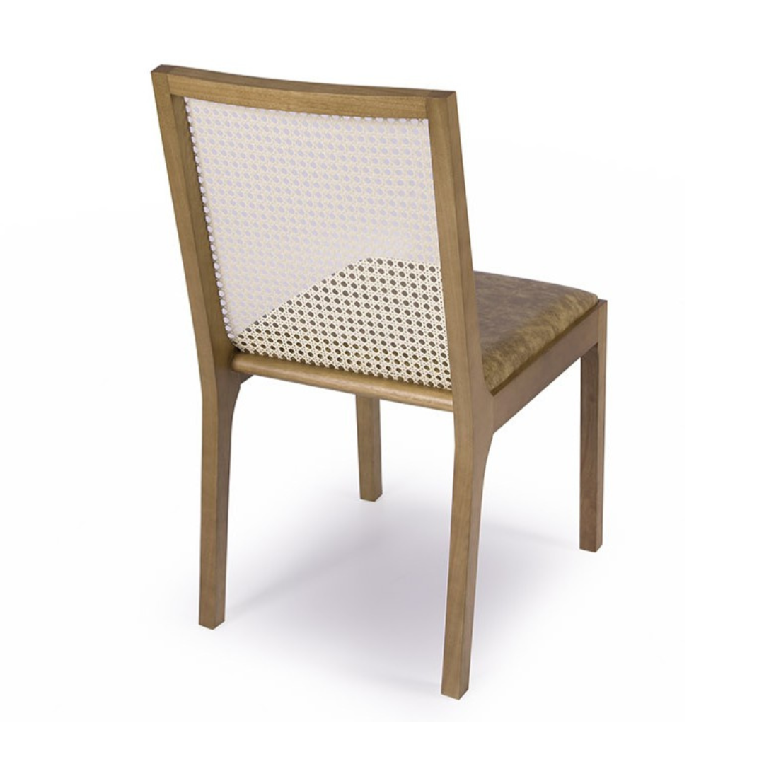 O grande diferencial desta peça é o seu encosto em tela, um elemento clássico que retorna ao topo das tendências globais por sua leveza visual e capacidade de criar ambientes mais acolhedores. O acabamento na cor castanho ressalta os veios da madeira de reflorestamento, conferindo uma elegância sóbria que se adapta tanto a projetos rústicos contemporâneos quanto a espaços minimalistas.