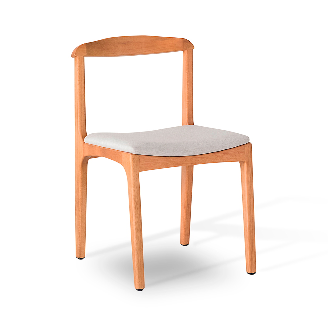 Com assento e encosto em multilaminado anatômico, a peça se adapta ao corpo com naturalidade, proporcionando conforto mesmo em longos períodos de uso. O assento é revestido com espuma soft D-28, oferecendo maciez e suporte equilibrado.